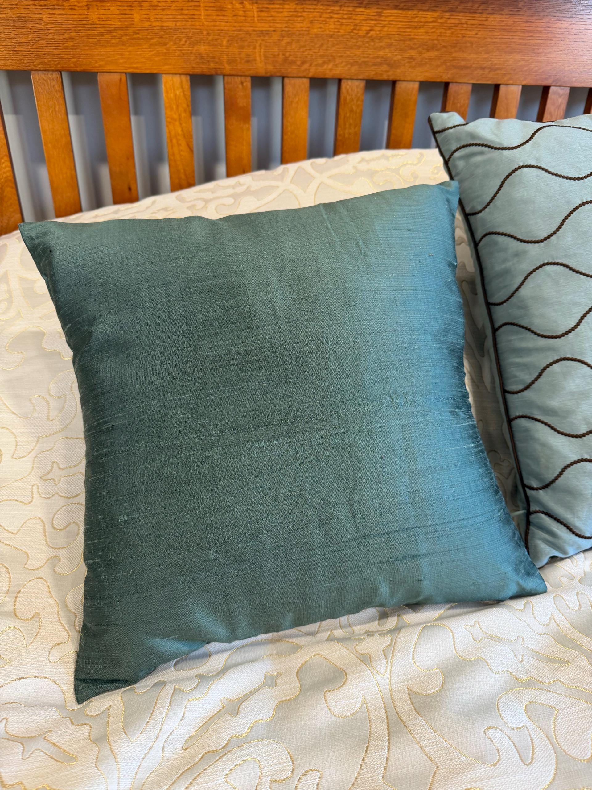 Tarrytown Green Pure Silk Cushion Cover Handmade Throw Pillow Decorative Home Decor Dupioni Silk Pillow Cover House Warming Bridal Shower Wedding Gift.