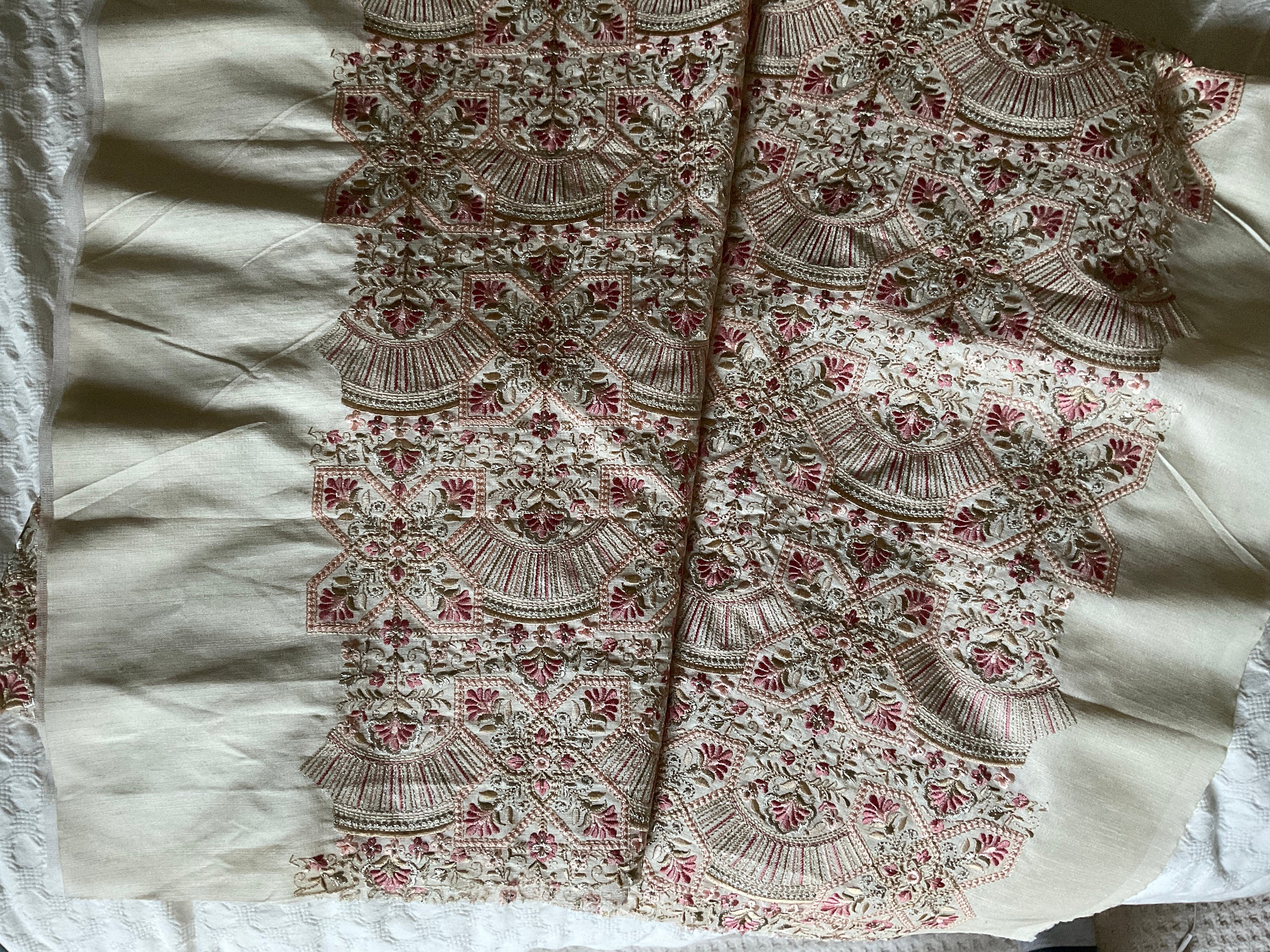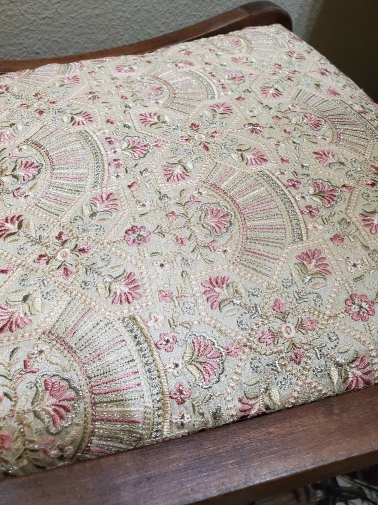 ➤ Color: Peach, Pink, Beige Embroidery on Beige Viscose Dupioni Fabric.
