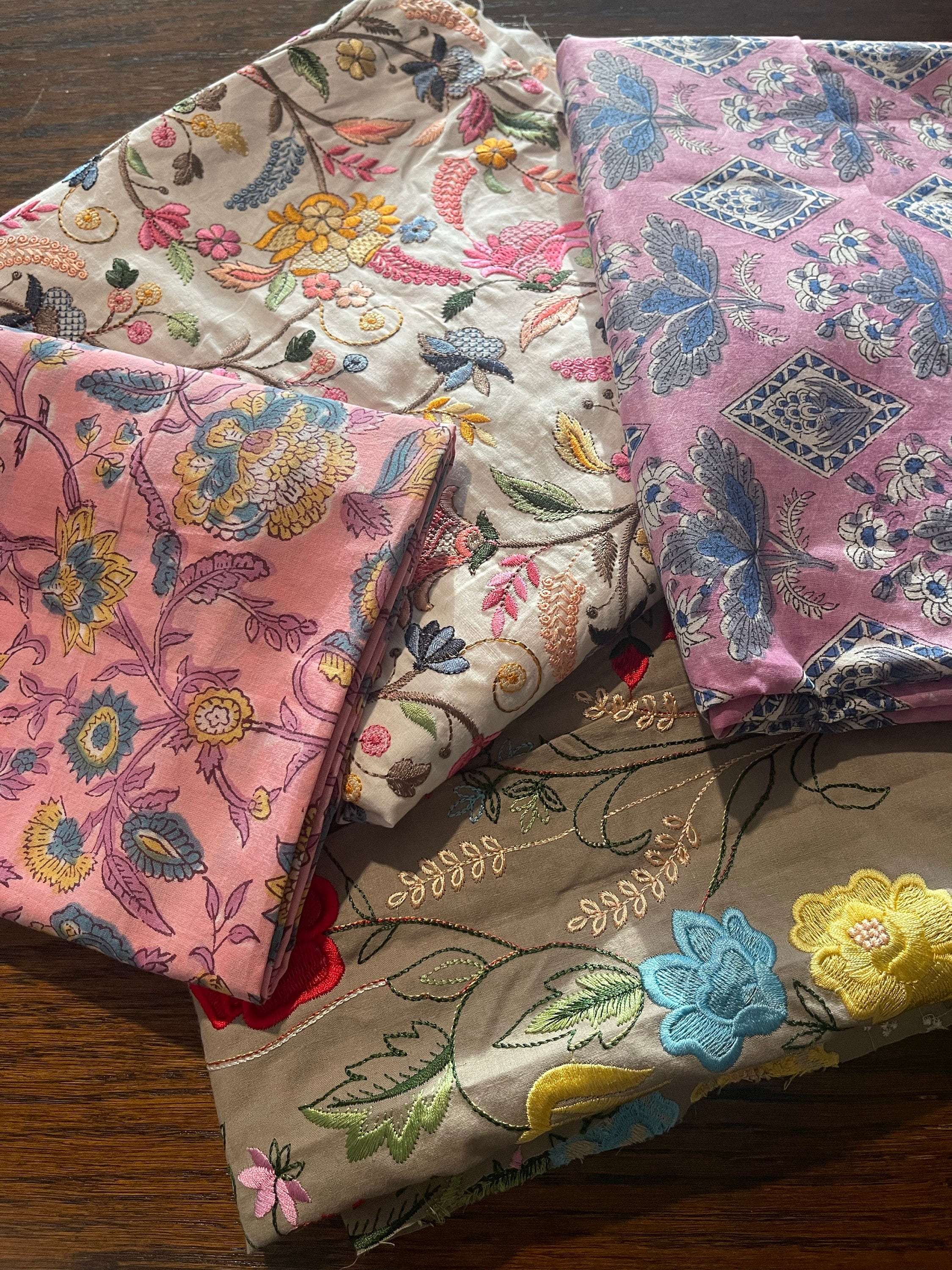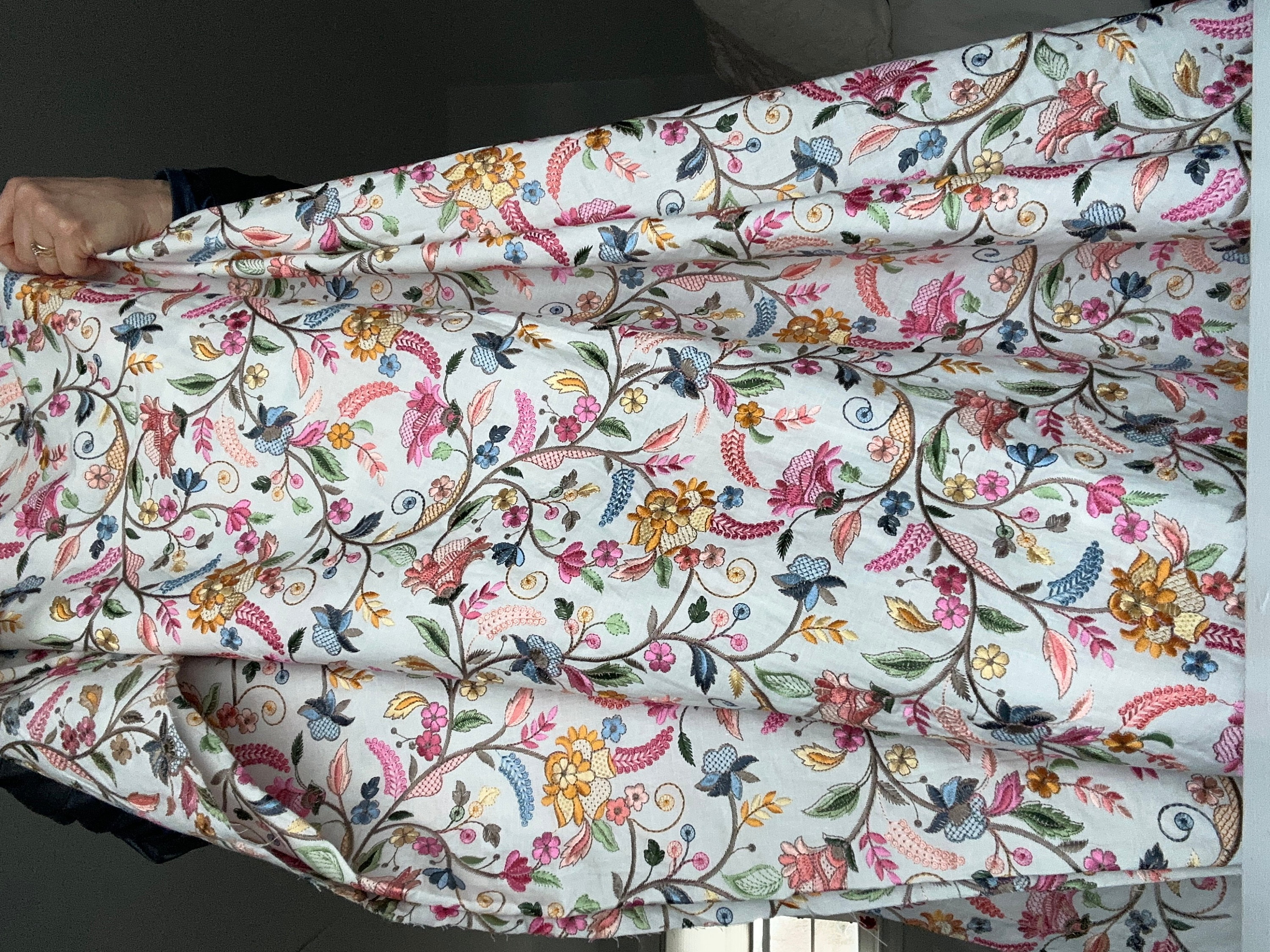 Indian Embroidered Cotton Fabric by the Yard Embroidery Summer Dresses Party Costumes Dolls Bags Cushions Table Runner Sewing DIY Crafting