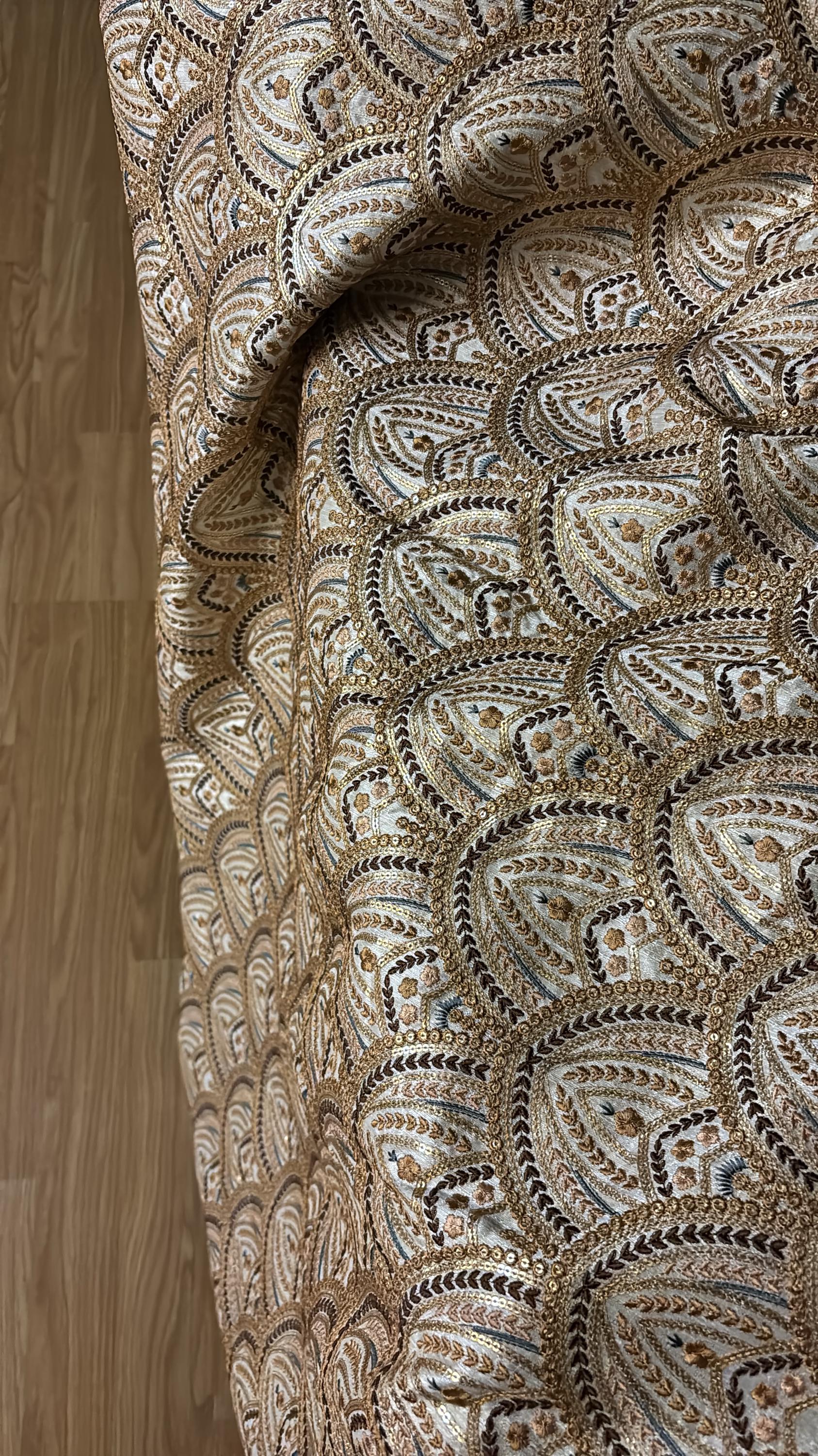 ➤ Color: Brown, Beige, Tan, Grey with sequin on Ivory Viscose Silk Fabric.