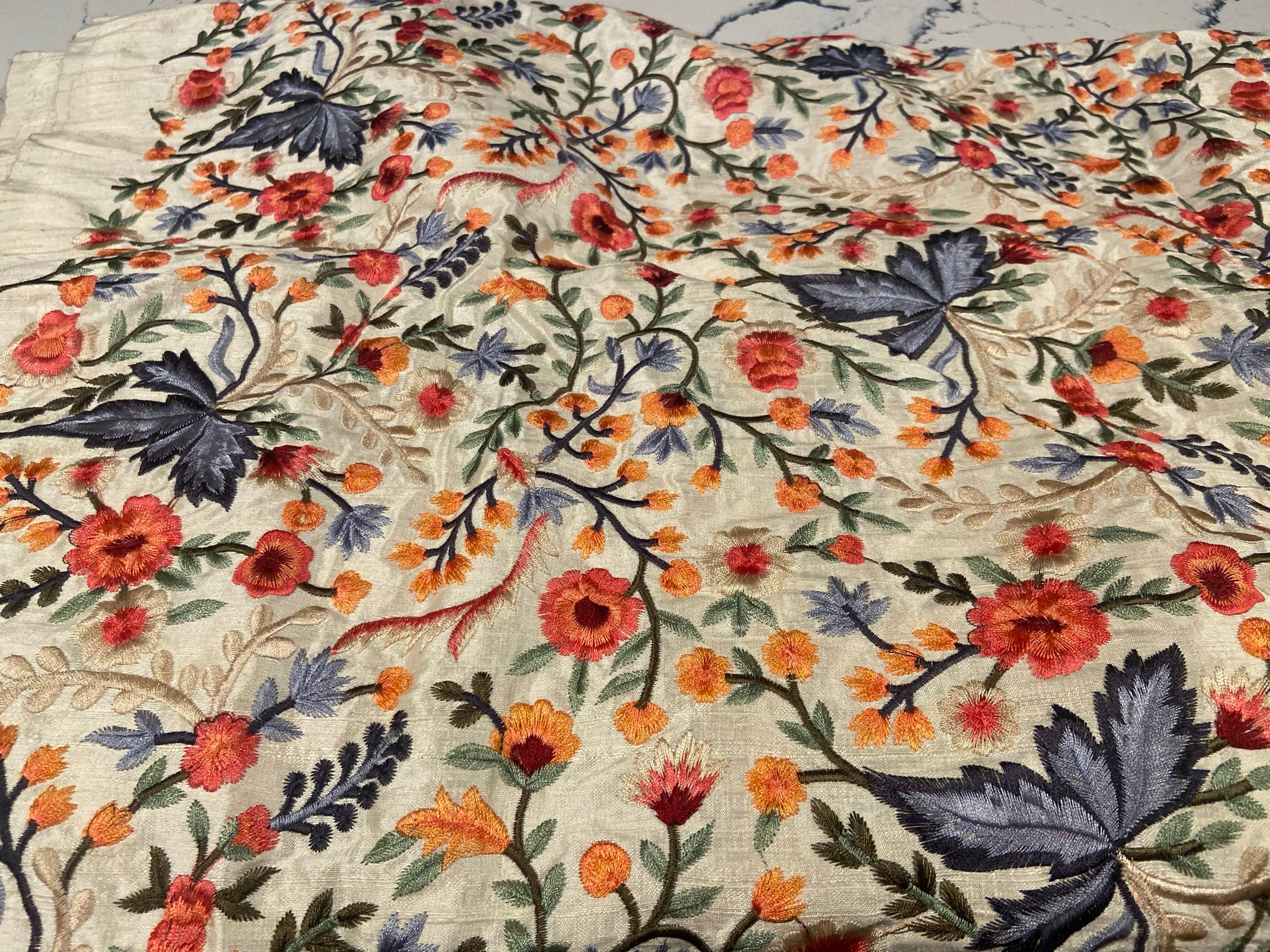 Pure Dupioni Silk Embroidered Fabric by the yard Sewing Crafting Indian Embroidery Wedding Dresses Costumes Dolls Cushions Table Runners