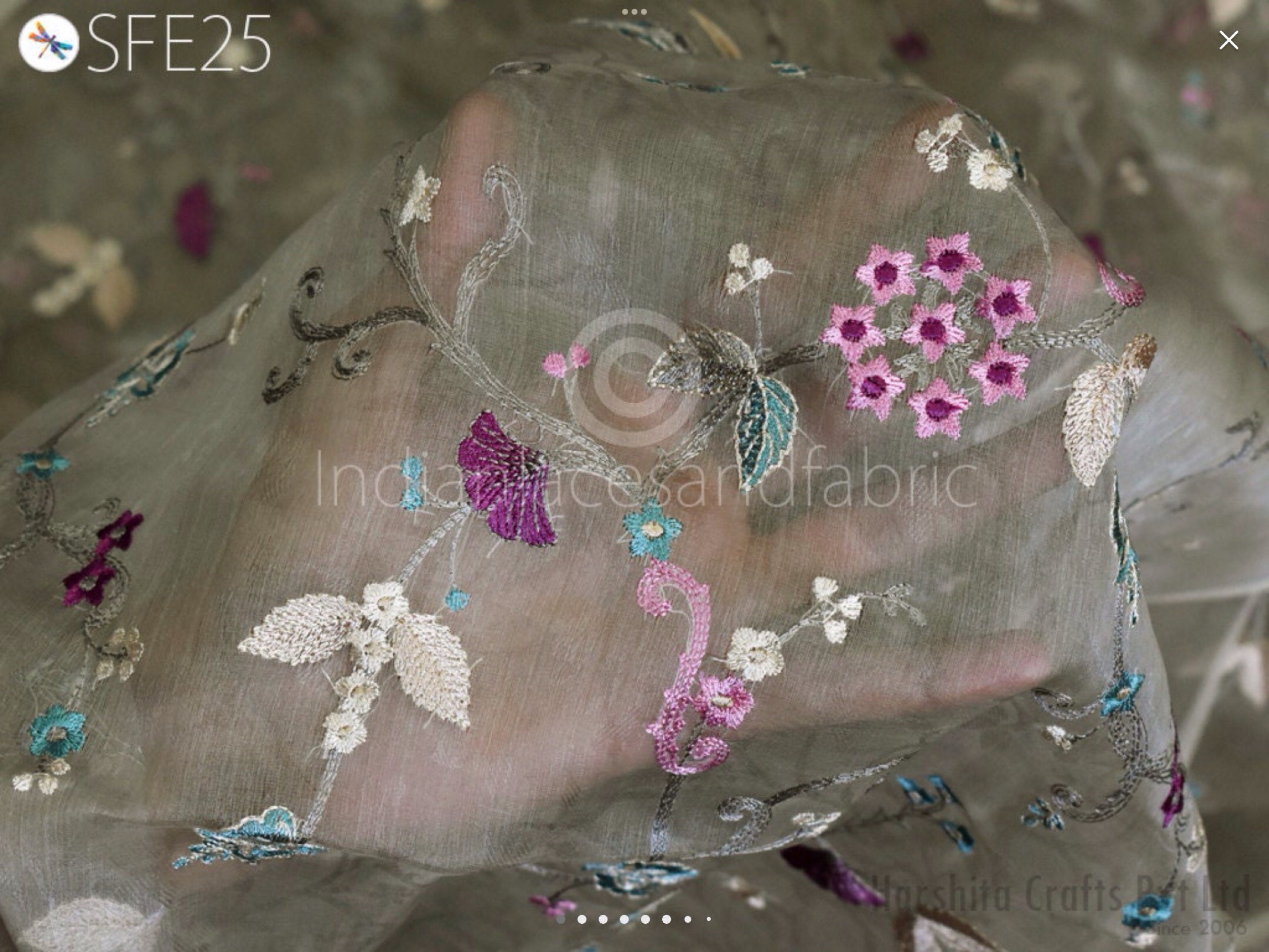 This is a beautiful Organza Silk Fabric with delicate embroidery will add glamour to your special occasion. Gentle to touch and feels great on your skin. If you like working with natural fibers this fabric is for you. Will work very well for wedding dresses, gowns, crafty projects, hair accessories, veils, hats.