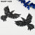 Embroidered Flying Bird Appliqués (2 Pair): Black Zari Thread, Beaded Indian Patches (6 Inch)