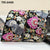 Color: Magenta, Grey, Yellow, Peach on Black Viscose Fabric