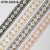 This trim is available in 4 colors on viscose fabric.