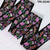Color: Peach, Lilac, Green on black viscose dupioni fabric.