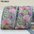Color: Pink, Red, Green, and Brown on steel grey fabric