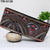 Color: Grey, Coral, Brown Embroidery on Black Viscose Fabric.