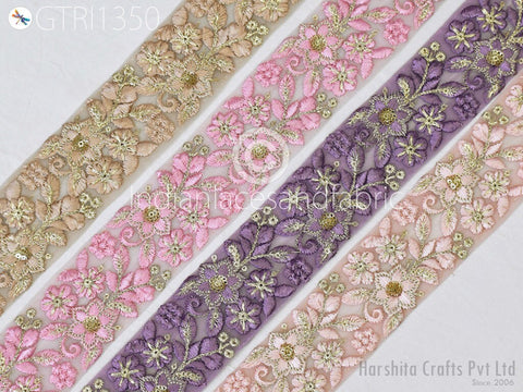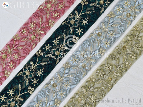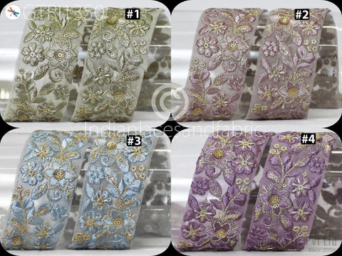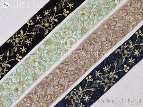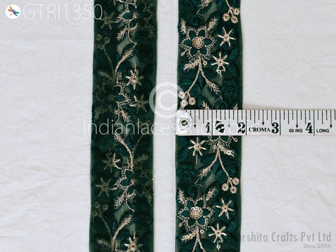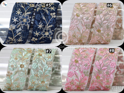 9 Yard Indian Sewing Embellishment Embroidery Fabric 48mm Trim Embroidered Saree Ribbon Crafting Border Dress Trimmings Cushion Covers, Christmas Trimmings, saree border designs for embroidery Dresses. Embroidered designer Trims. This...