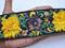Green, Navy Blue, Brown, Sunny Yellow, Yellow, Black Embroidered designer Trims on Black silk Fabric. This beautiful Lace can be used for Beach Bags, Evening Bags, Outdoor Dresses, General, Upholstery, Create any craft projects, Scrapbooking Project, etc.
