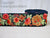 Peach, Green, Orange, Coral Red Embroidered designer Trims on Dark Navy Blue Dupioni Silk Fabric. This beautiful Lace can be used for headbands, table runner, curtains, Table cover, salwar kameez, DIY belt, Wall Hanging, Art Quilt etc.