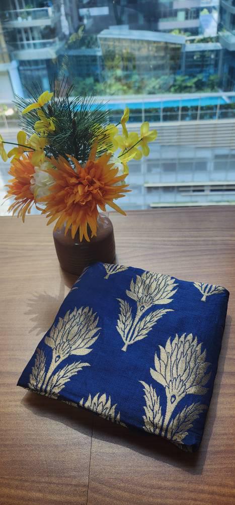 Blue Brocade fabric by the Yard Indian Fabric Wedding Dress Banarasi Fabric Sewing Crafting Banaras fabric Bridal lehenga Material Fabric. This is a beautiful banarasi blended silk brocade floral design fabric in Blue and Gold. The fabric illustrate motifs pattern in golden weaving on Blue background.