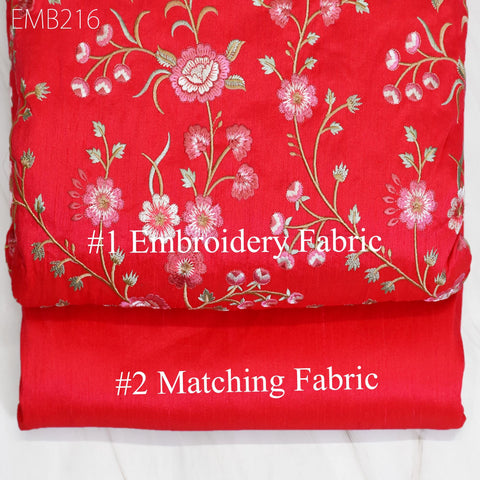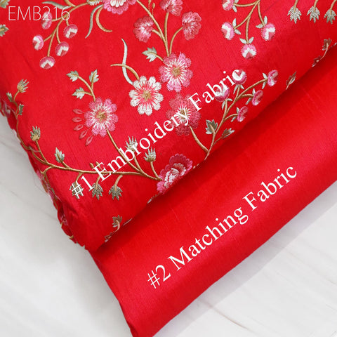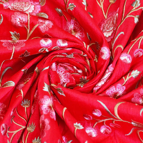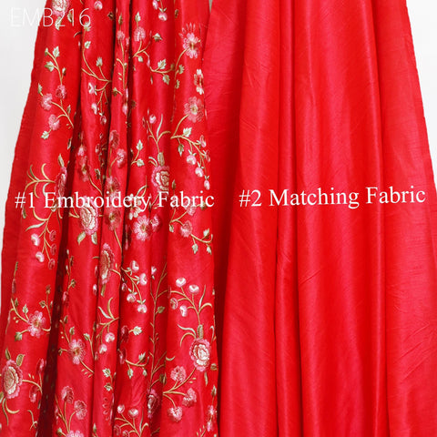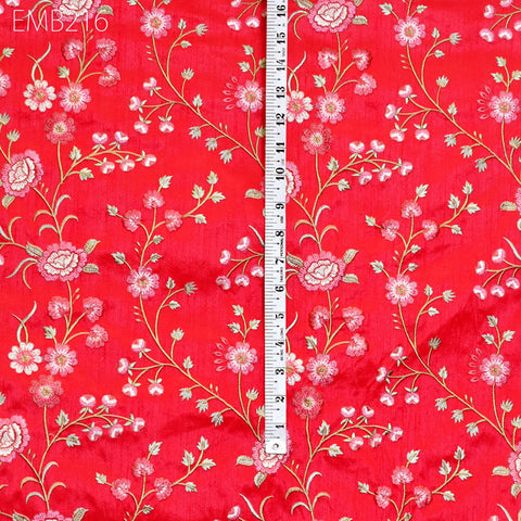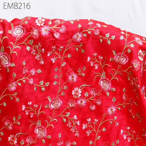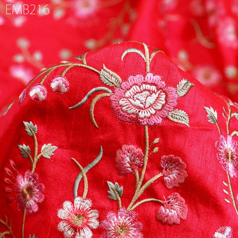 Carrot Red Indian Embroidered Dupioni Fabric by the Yard Sewing Wedding Dresses Costumes Dolls Bag Cushion Covers Table Runners Upholstery
