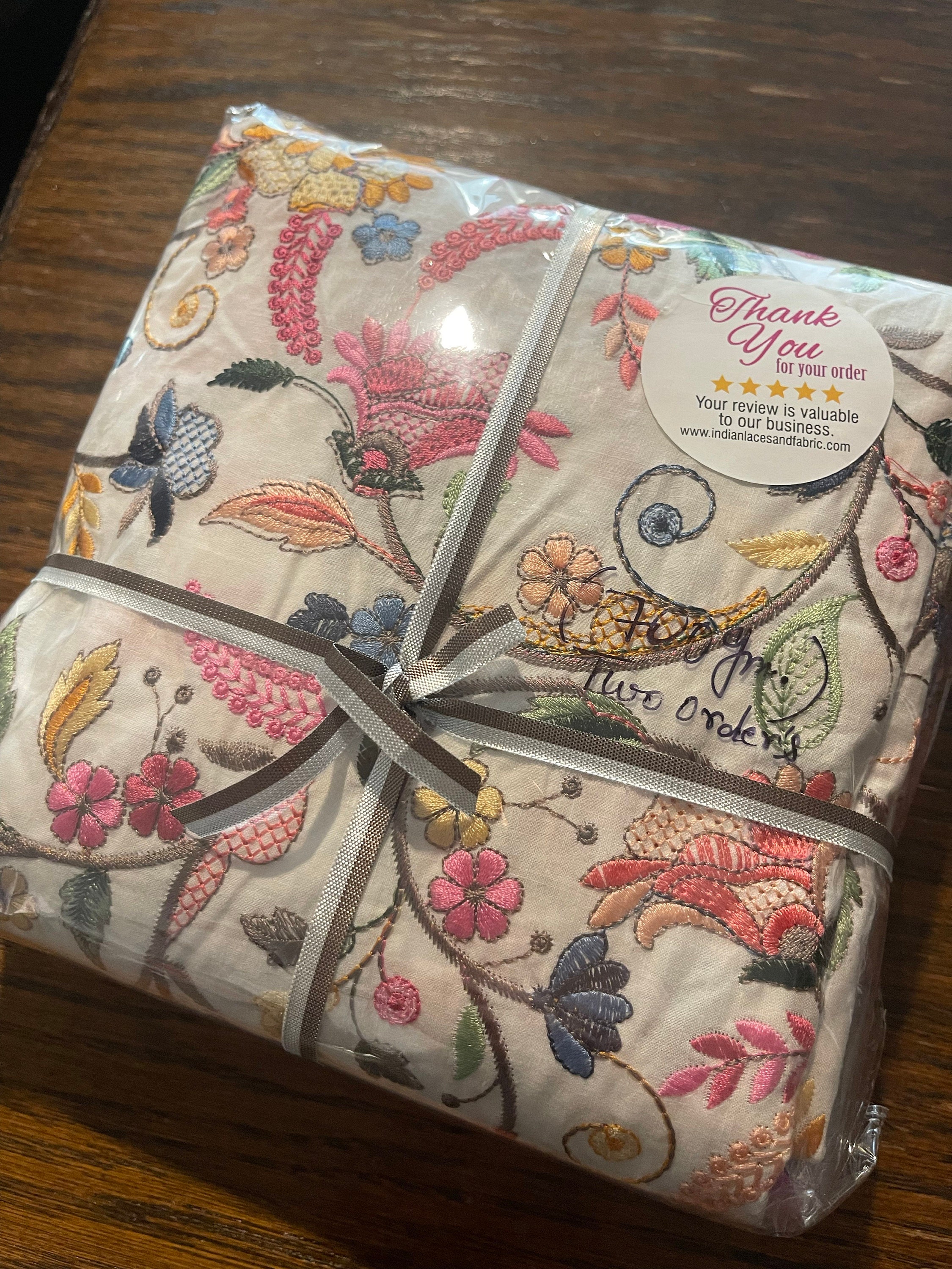 Floral Embroidered Cotton Fabric by the Yard Indian Embroidery Sewing DIY Crafting Women Summer Dresses Costumes Tote Bag Home Decor Curtain