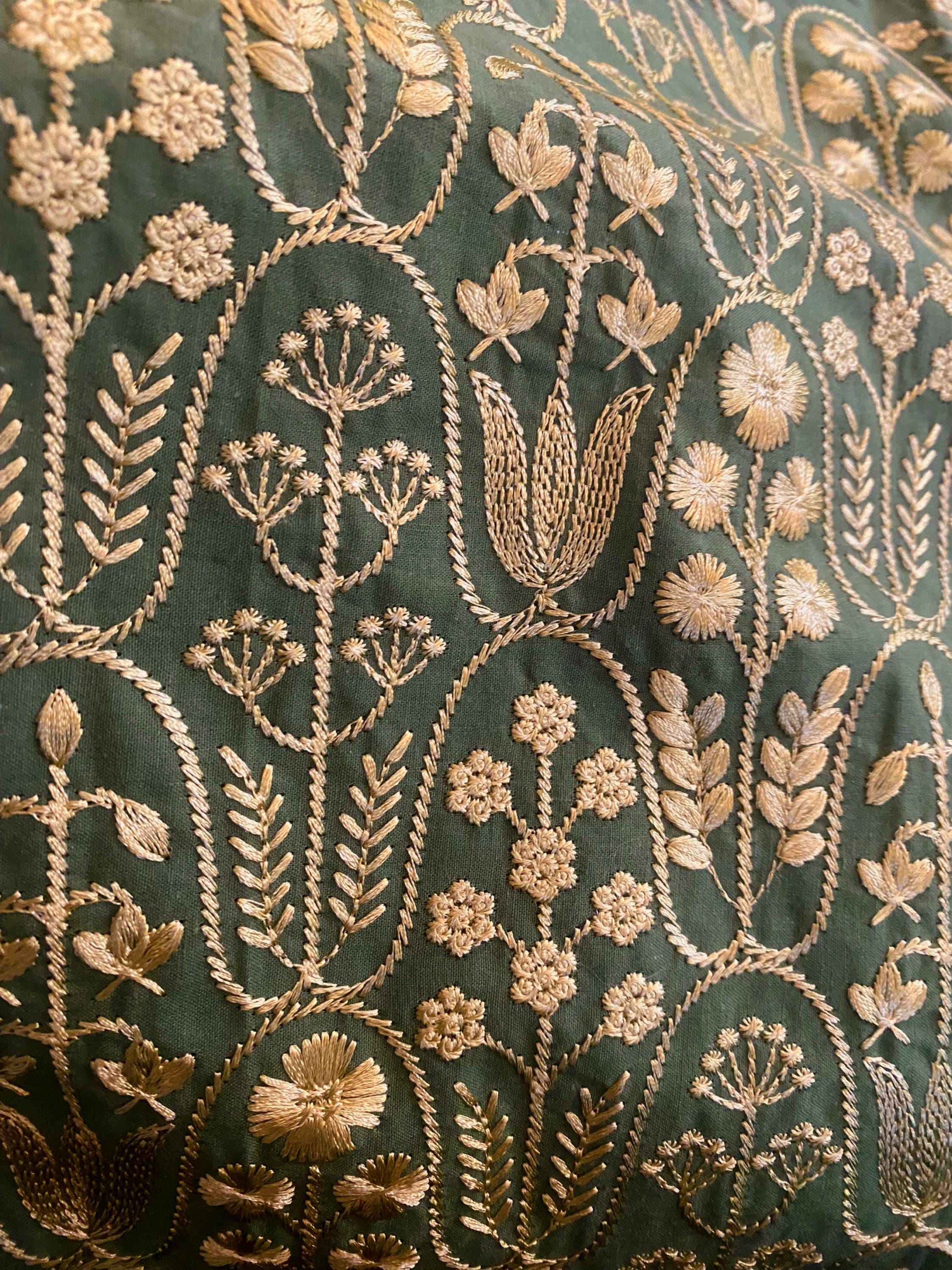 Green Embroidered Cotton Fabric by the Yard Indian Embroidery Sewing Fabric DIY Crafting Wedding Dress Costumes Doll Bag Home Decor Cushions. Indian Fabric, Embroidery Cotton, Floral Fabric, Dress material, Indian Embroidery, Skirts Making Fabric.