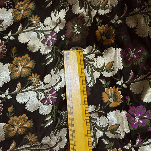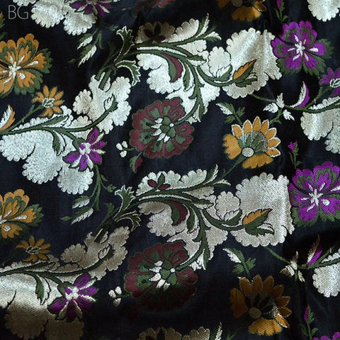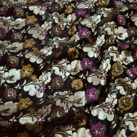 Indian Banaras Wedding Dress Fabric Black Silk Brocade by the Yard Banarasi Fabric Dress Material Crafting Sewing Cushion Covers Home Décor. This is a beautiful multi color banarasi pure silk...