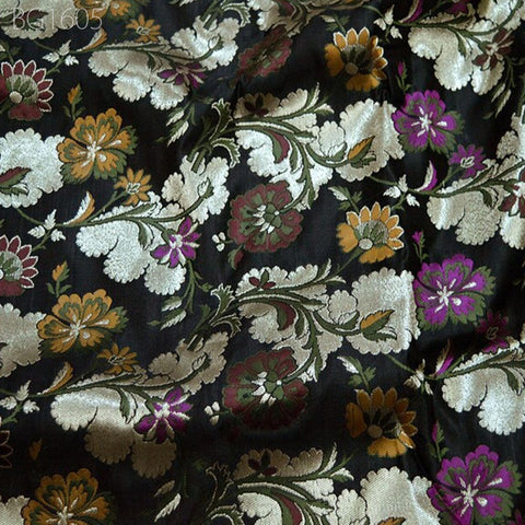 Indian Banaras Wedding Dress Fabric Black Silk Brocade by the Yard Banarasi Fabric Dress Material Crafting Sewing Cushion Covers Home Décor