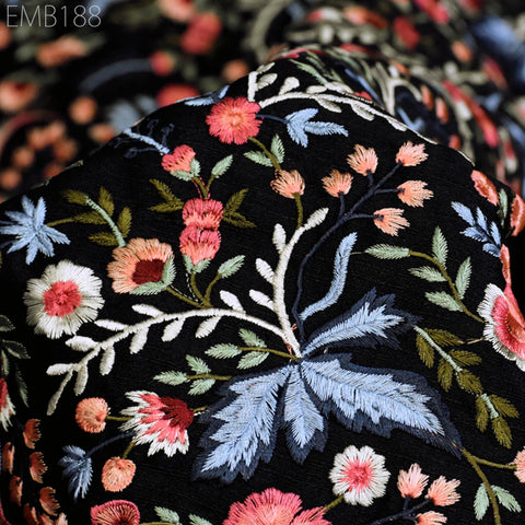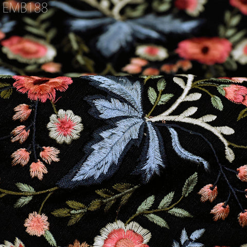 Indian Embroidered by the yard Fabric Sewing DIY Crafting Embroidery Wedding Dresses Fabric Costumes Dolls Bags Cushion Covers Table Runners