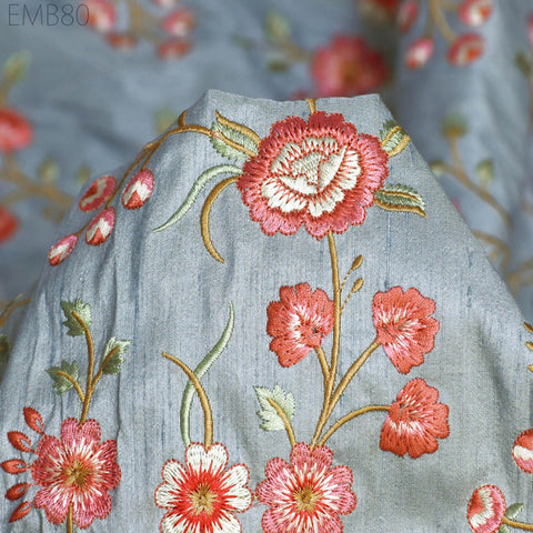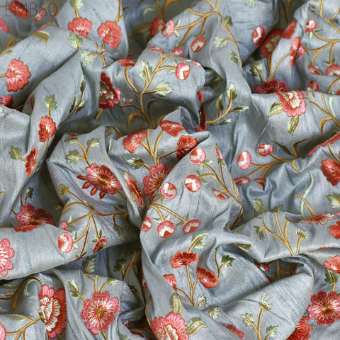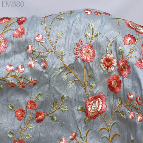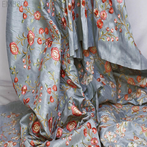 Indian Embroidered Dupioni Fabric by the Yard Sewing Crafting Wedding Dresses Costumes Dolls Bags Cushion Covers Table Runners Upholstery