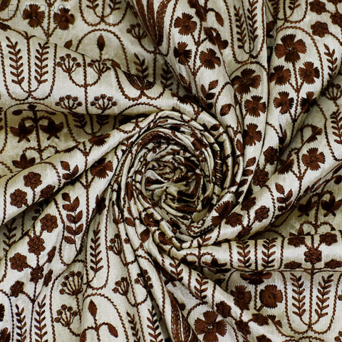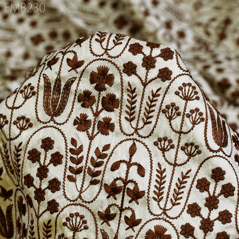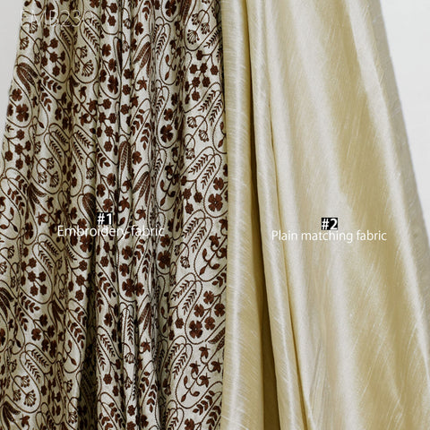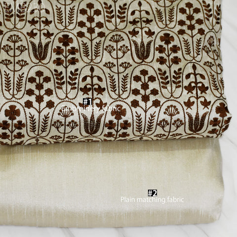 Beige Indian Embroidered Dupioni Fabric by the Yard Sewing Crafting Embroidery Wedding Dresses Costumes Cushion Covers Table Runners Upholstery. Indian Fabric. Embroidered fabric, Cushion Covers Fabric, table Runner Fabric, Home...