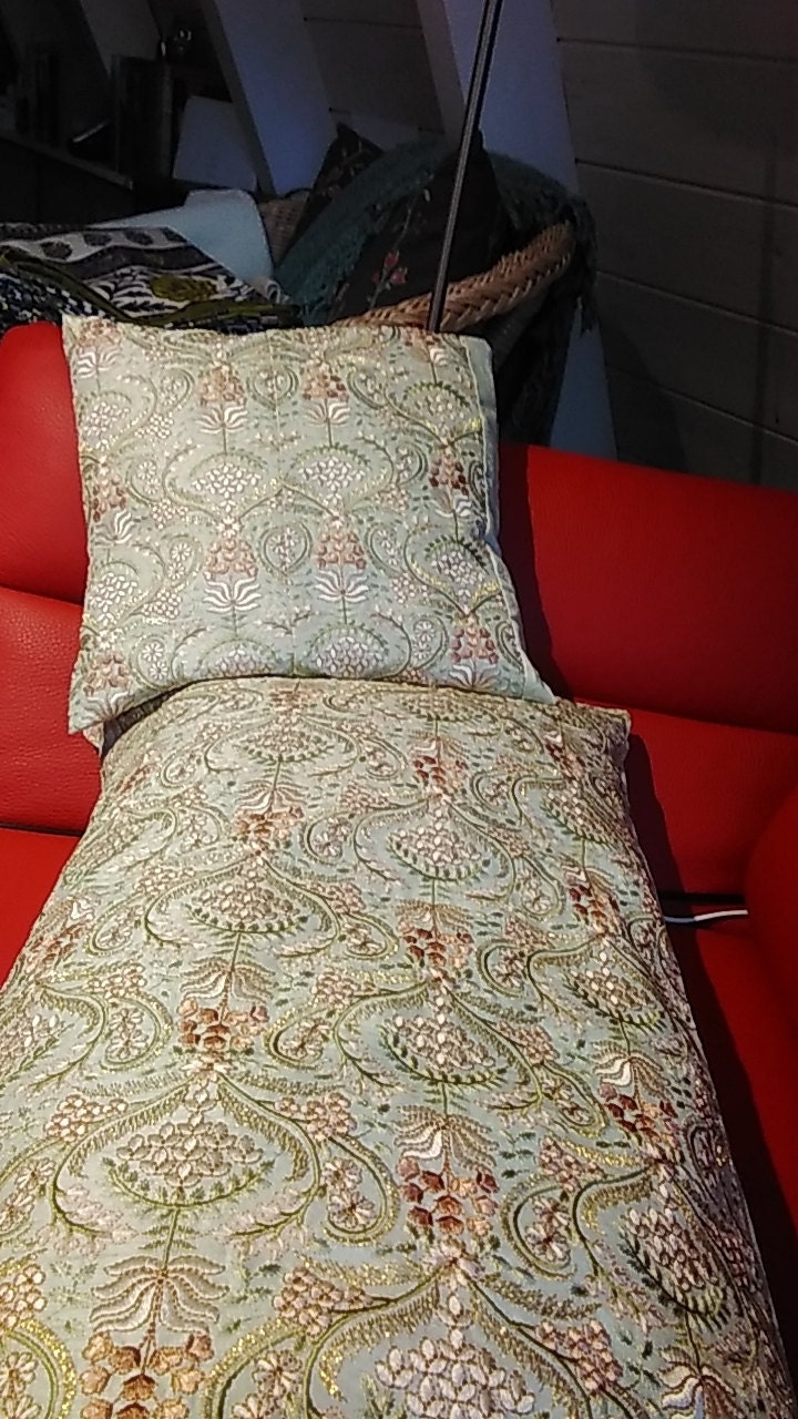 Mikki QThis is the most beautiful velvet I've ever seen. The rich rust color velvet makes a lush backdrop for fine flowery embroidery i... Read MoreThis is the most beautiful velvet I've ever seen. The rich rust color velvet makes a lush backdrop for fine flowery embroidery in three shades of blue, and also purple threads. The tiny sequins are not garish and add only a hint of glisten to the pillow's effect. I was also very impressed with the excellent discription and graphics on your pages. I have searched everywhere for the perfect velvet to make a 1930's pillow I've had my heart set on for a long time, but could not find ready made or fabric. I am so happy and grateful you shared your gorgeous fabric on Etsy. My beautiful pillow is stuffed with kapoc and is an exquisite and stunning addition to a den couch, exactly what I wanted and even better in real life. Thank you for sending my package so quickly and thank you for making this gorgeous fabric! HideProduct ReviewedPosted on