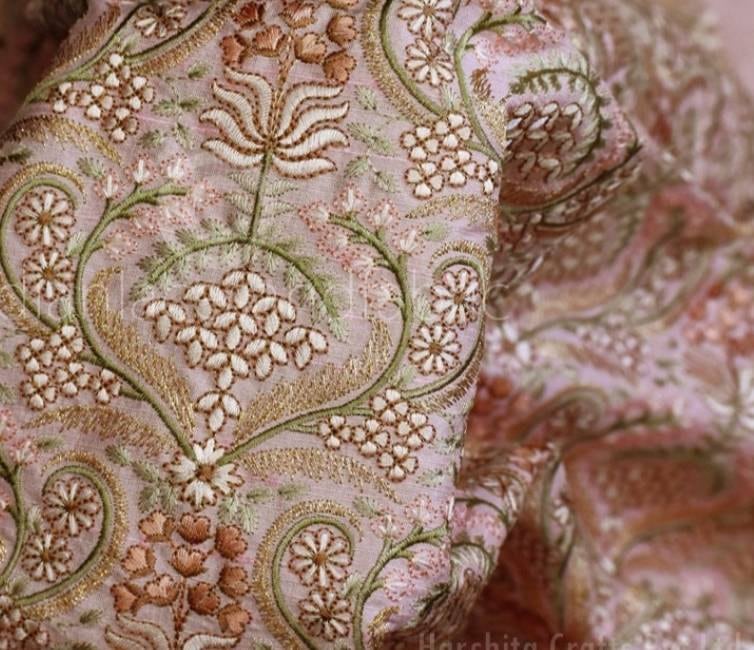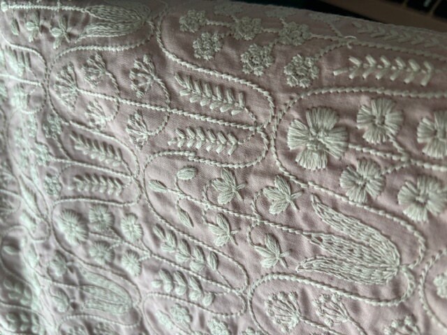 ➤ Color: Ivory Embroidery on Peachy Pink Cotton Fabric.
